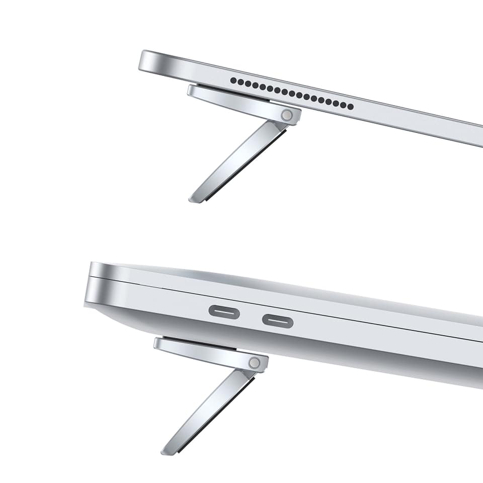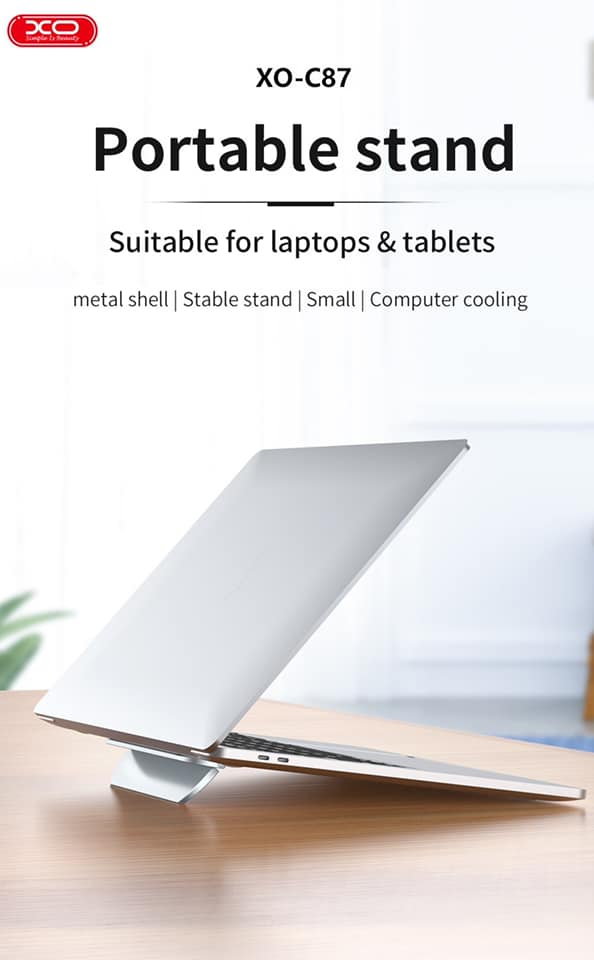 El XO C87 es un soporte plegable y portátil diseñado para laptops y tablets. Fabricado en aleación de aluminio con detalles en silicona antideslizante, ofrece un ángulo de inclinación ajustable de hasta 54°, promoviendo una postura ergonómica y mejorando la ventilación del dispositivo. Su diseño compacto y ligero (135 x 50 x 4 mm, 82.3 g) facilita el transporte y almacenamiento.
