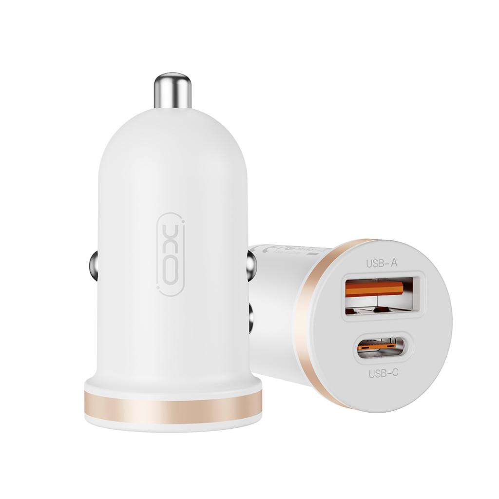 Mini Cargador para Auto CC56 – USB-A + USB-C (30W + 30W) Cargador compacto de alto rendimiento para auto. Ofrece carga rápida y simultánea a dos dispositivos con salidas USB-A y USB-C (30W cada una). Seguro, eficiente y perfecto para viajes.