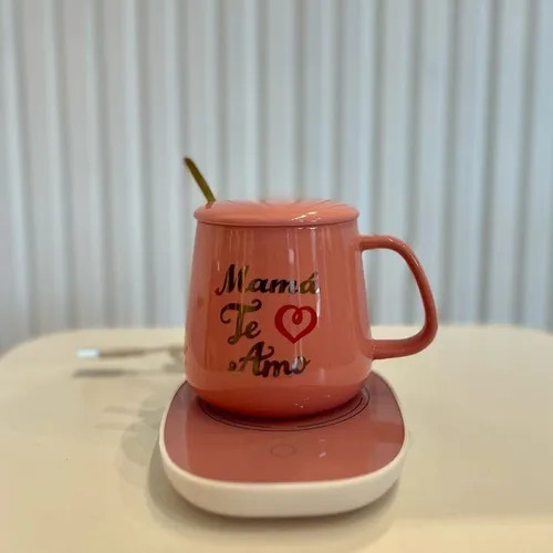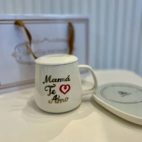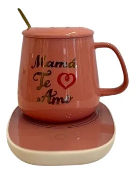 Demostrale tu amor con cada sorbo. Taza de cerámica con frase "Mamá te amo" + base térmica para mantener su bebida siempre caliente. Ideal para regalar y mimar a quien más se lo merece.